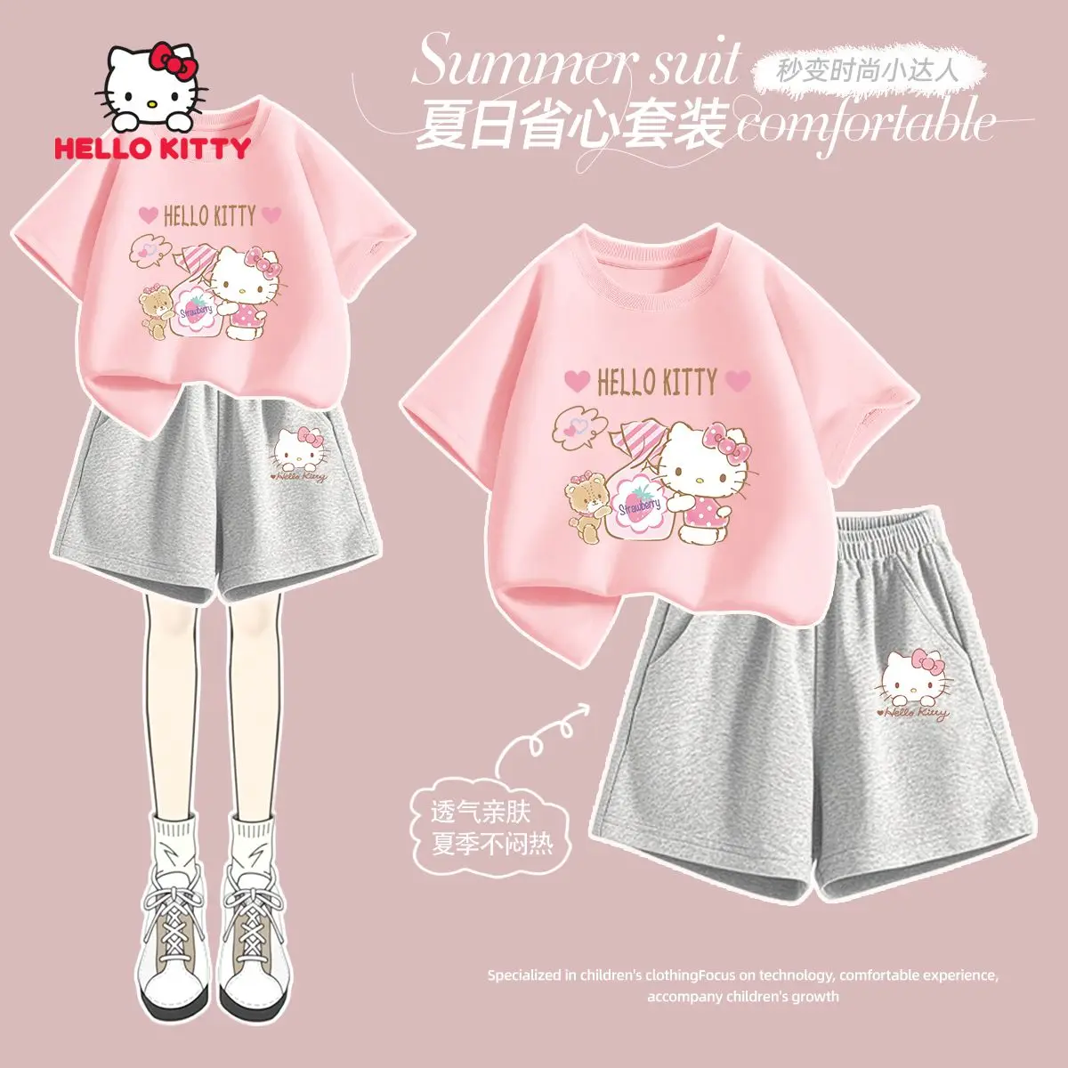 طقم بناتي صيفي قطن 100% طباعة كيتي
